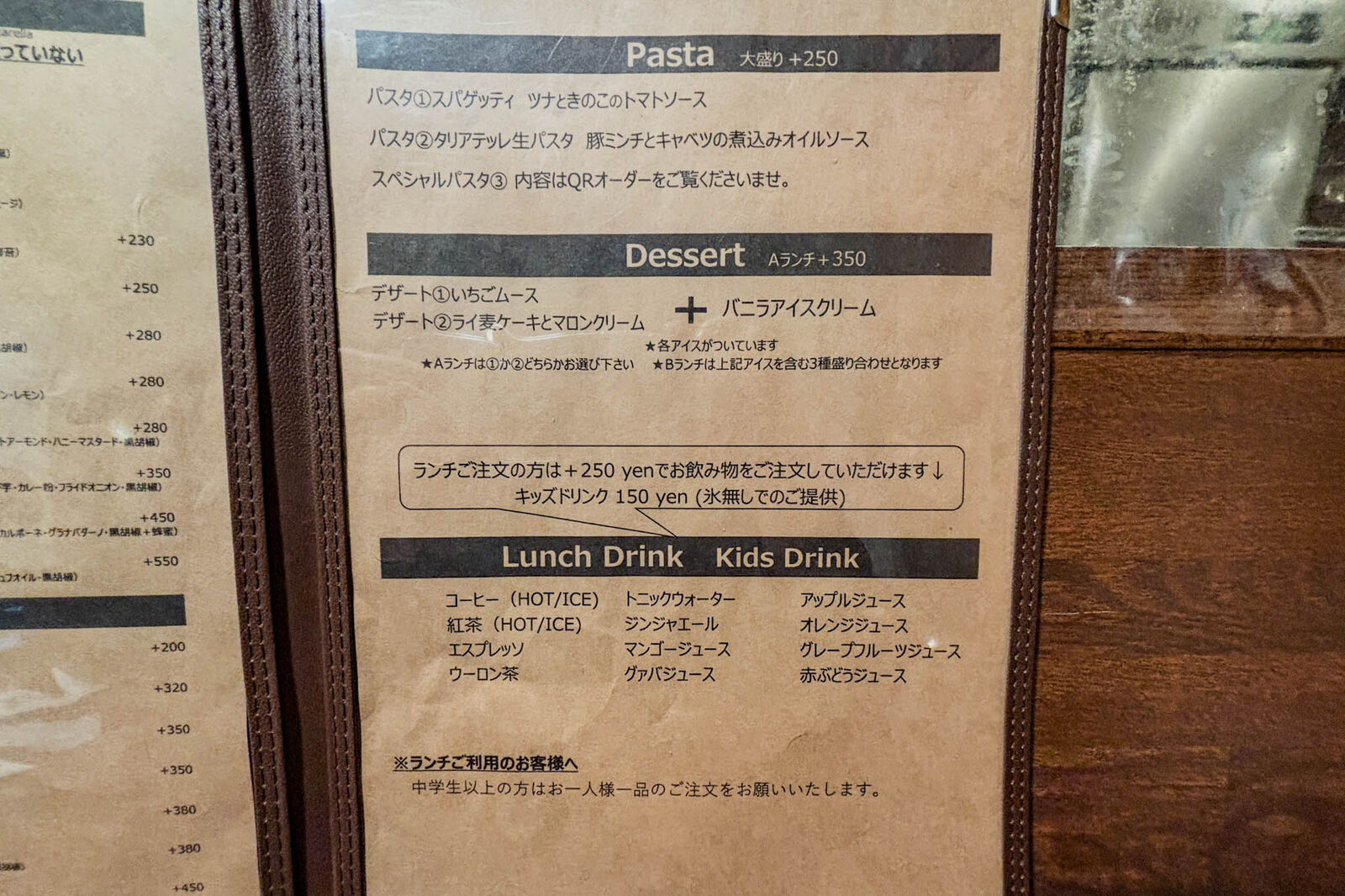 選べるパスタ、デザート、ドリンクのメニューはこちら↓