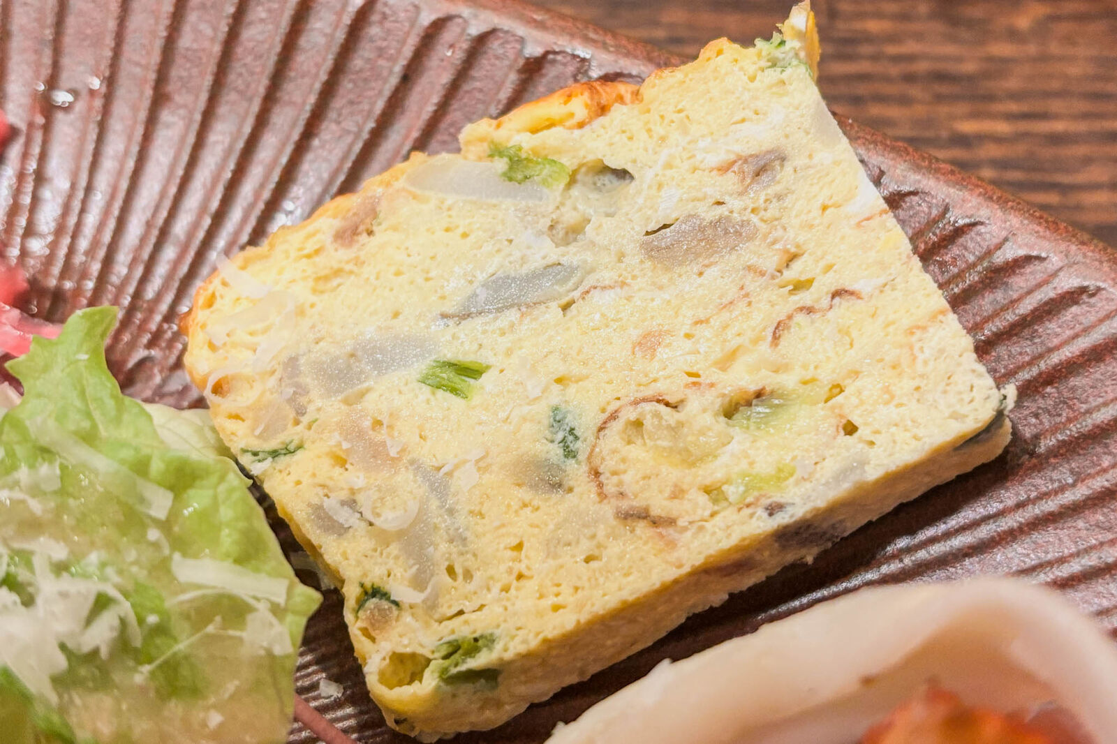 スパニッシュオムレツは分厚くて食べ応え抜群。