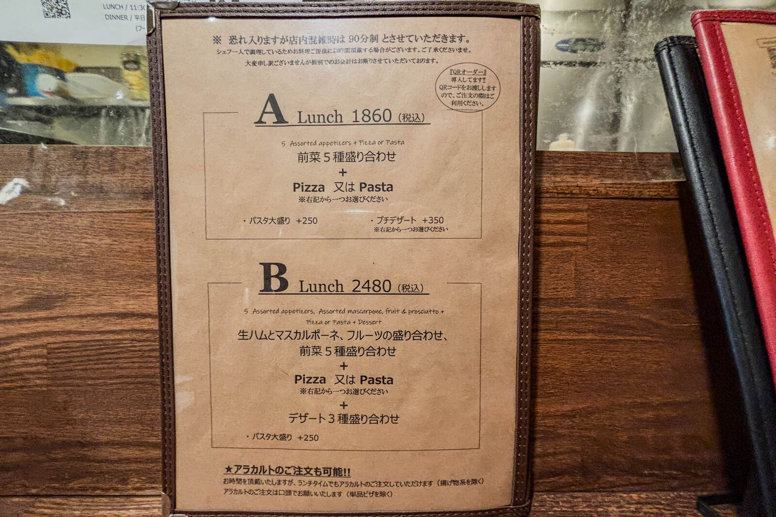 ランチはAランチとBランチがあり、メイン料理はピザ、パスタから選べるんです。