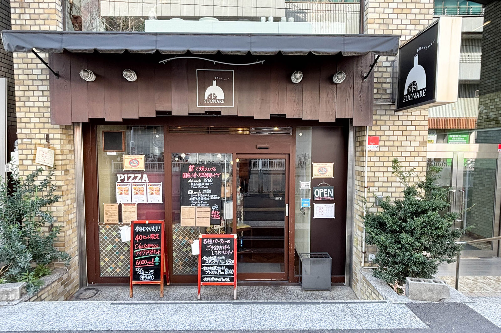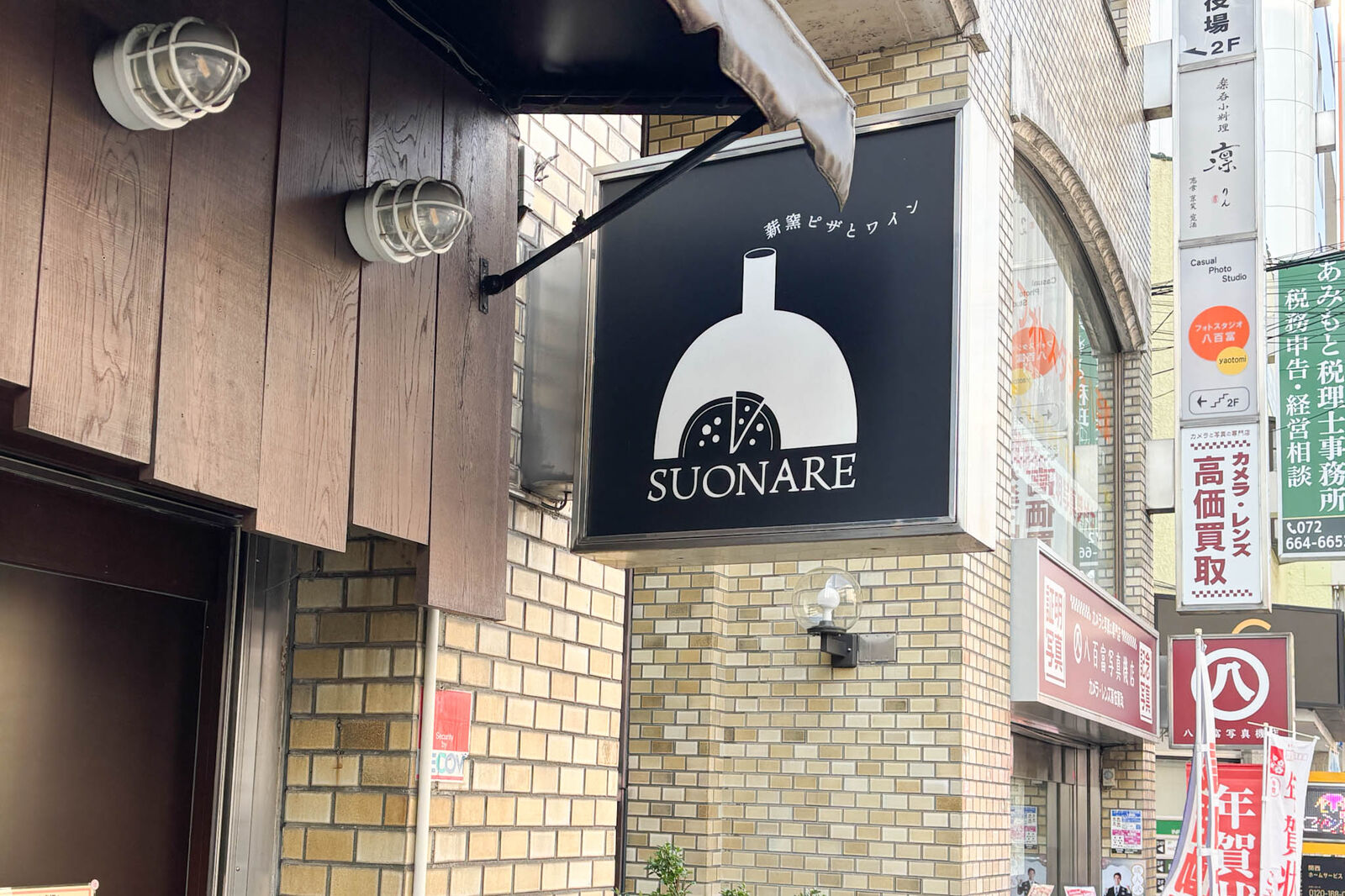 JR高槻駅から歩いて5分ほどのところにある「薪窯ピザとワイン SUONARE」。