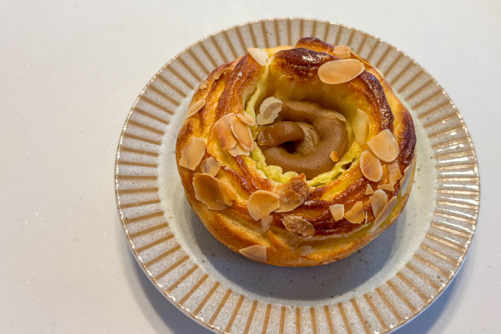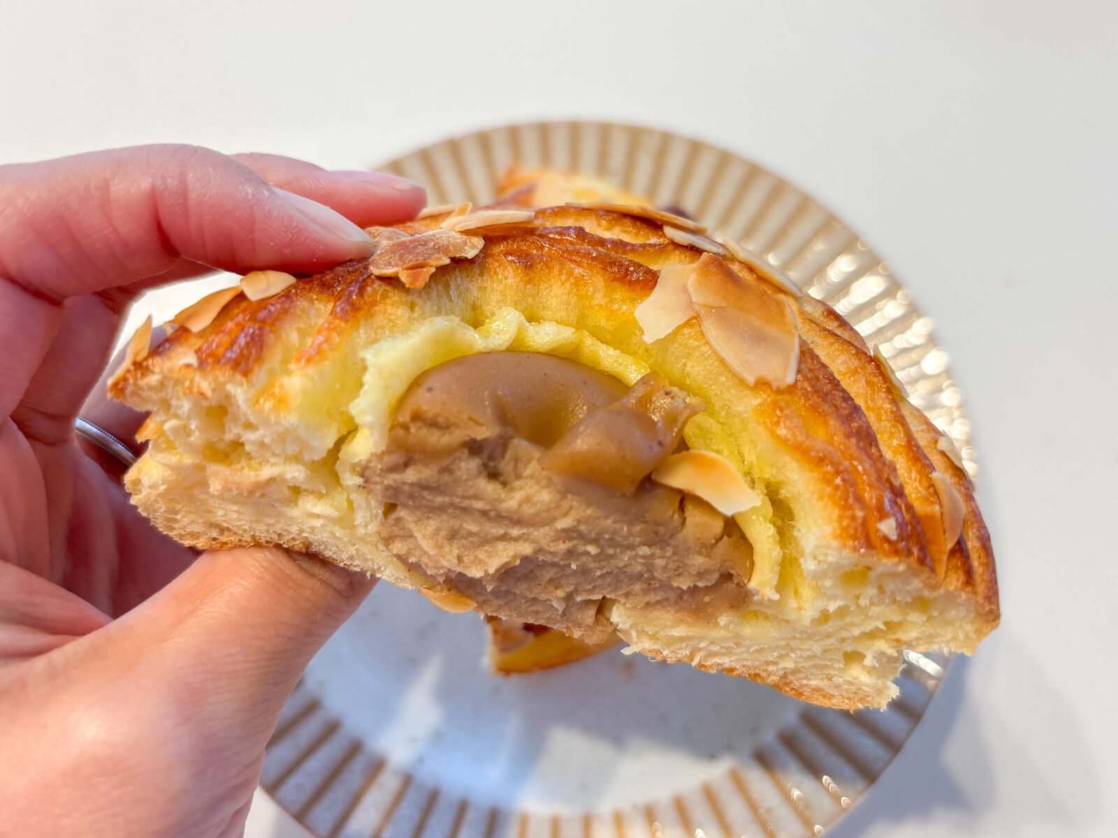 上にトッピングされたアーモンドの香ばしさと和栗の上品で濃い甘さがパンとめちゃくちゃマッチしてます!しっかり甘いのに重くなくて、美味しすぎる〜!こちらもぺろりと完食。