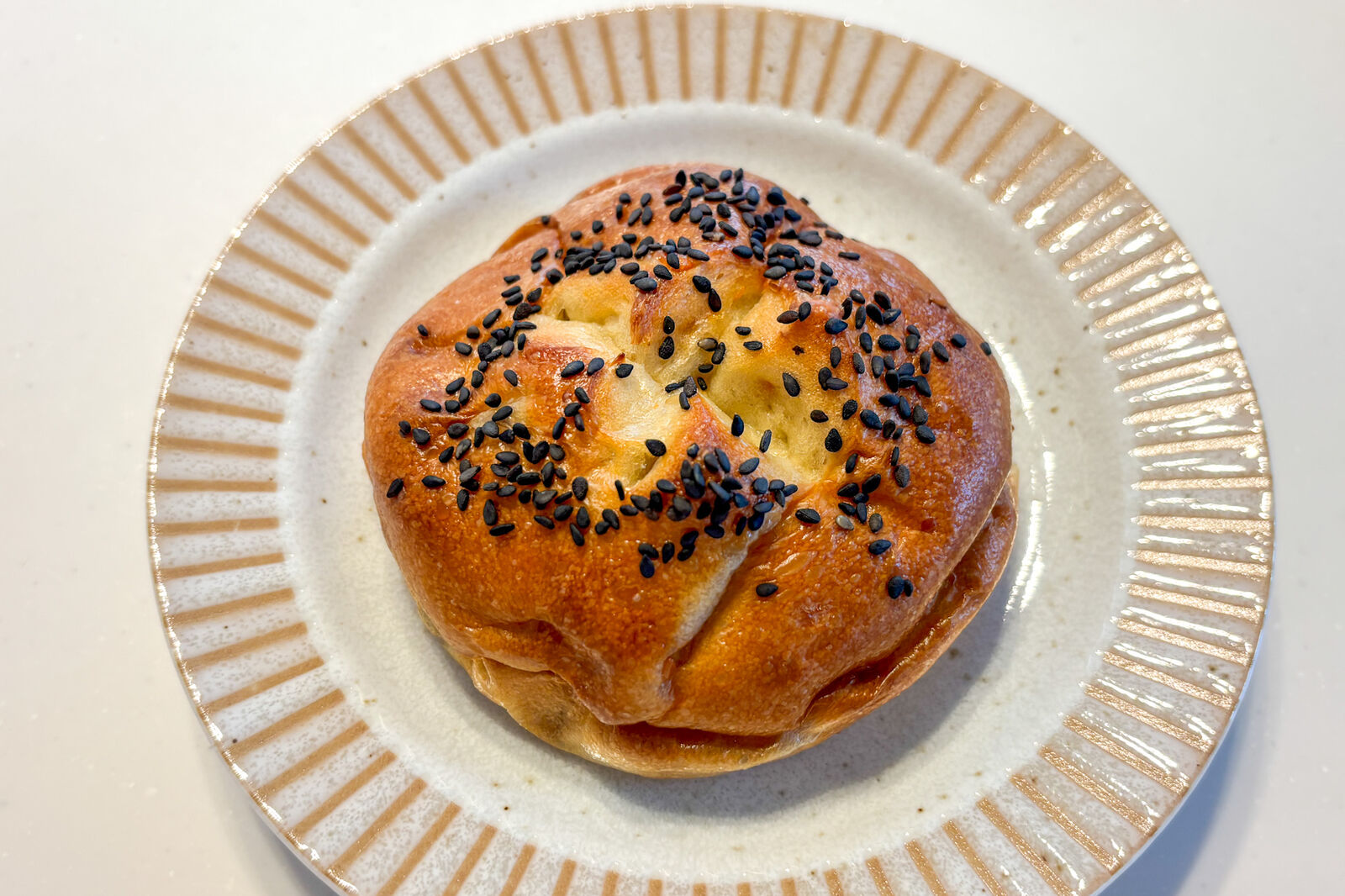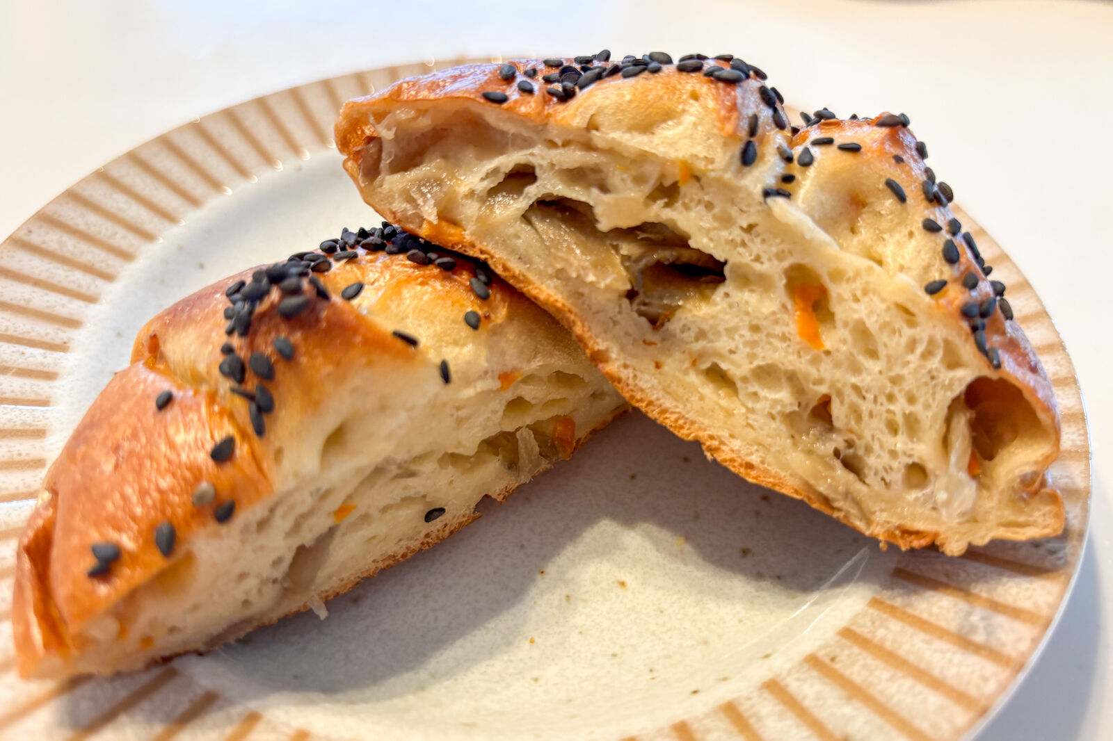 もちもちの米粉生地に、シャキシャキのごぼうがめっちゃ合う!噛むたびにきんぴらごぼうの旨みとパンの甘さが広がります。