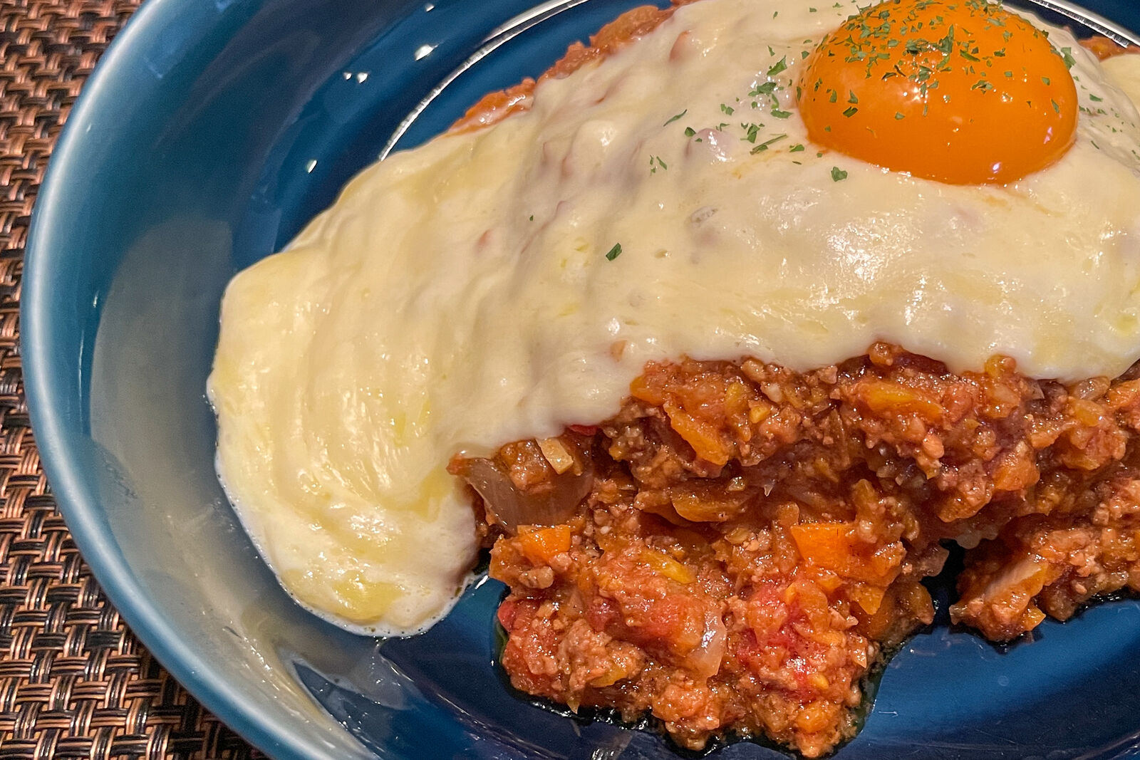 そしてやってきたのが、とろとろのチーズがトッピングされたキーマカレー。