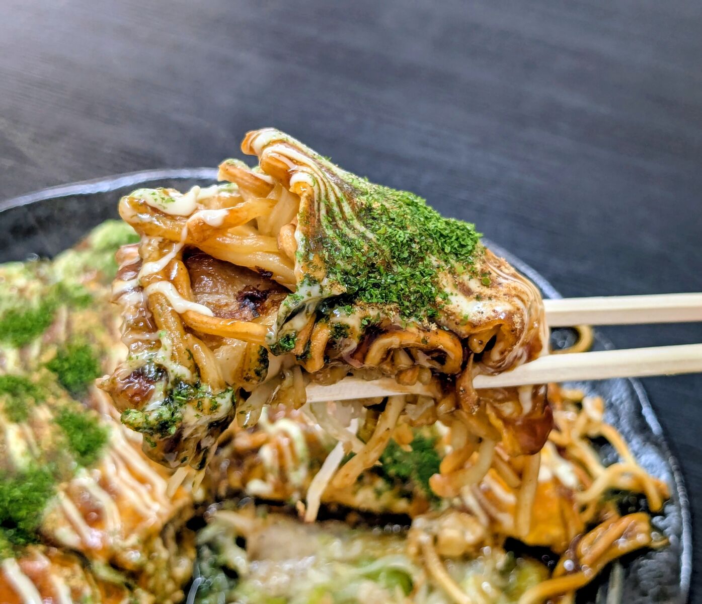 生地も鉄板で丁寧に焼かれていて、食べ進めるほどに味の一体感が増す組み合わせ。