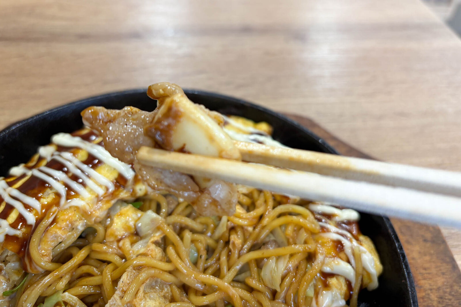 ソースがよく絡んだ麺はしっかりとしたコシがあり、口に入れた瞬間ソースの甘辛い香りが広がります。