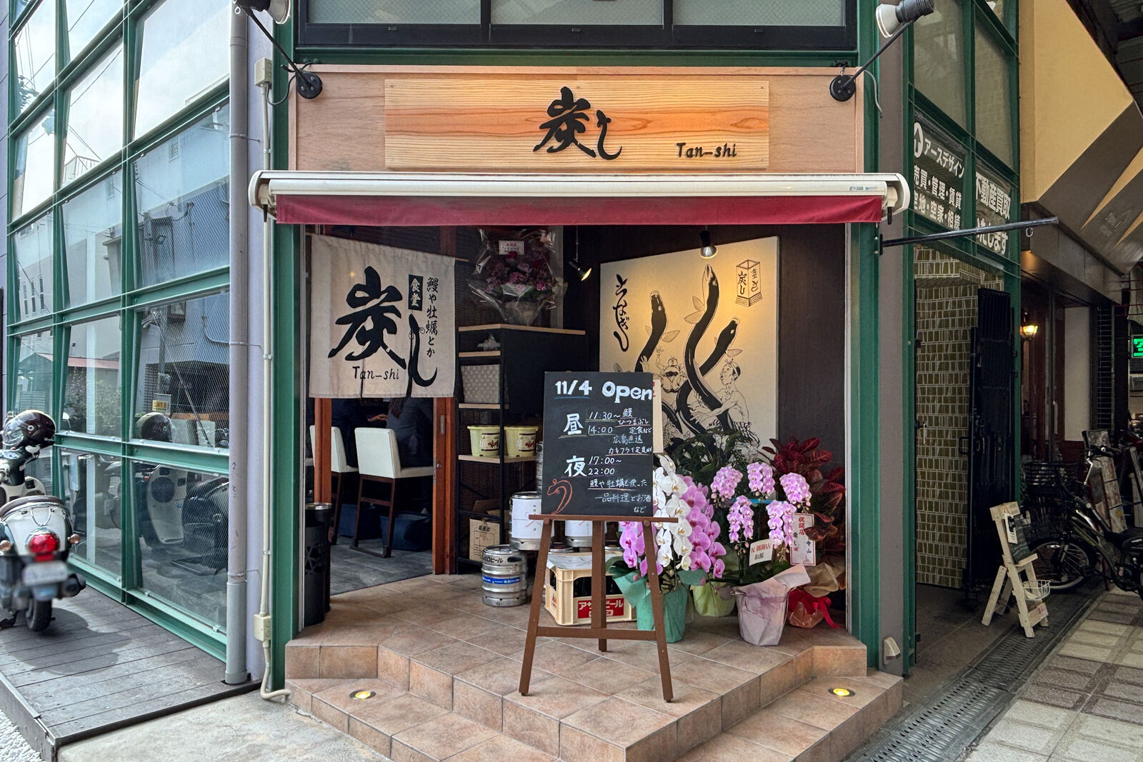 「鰻や牡蠣とか 炭し」は11月4日にオープン。開店時にも記事にしています。