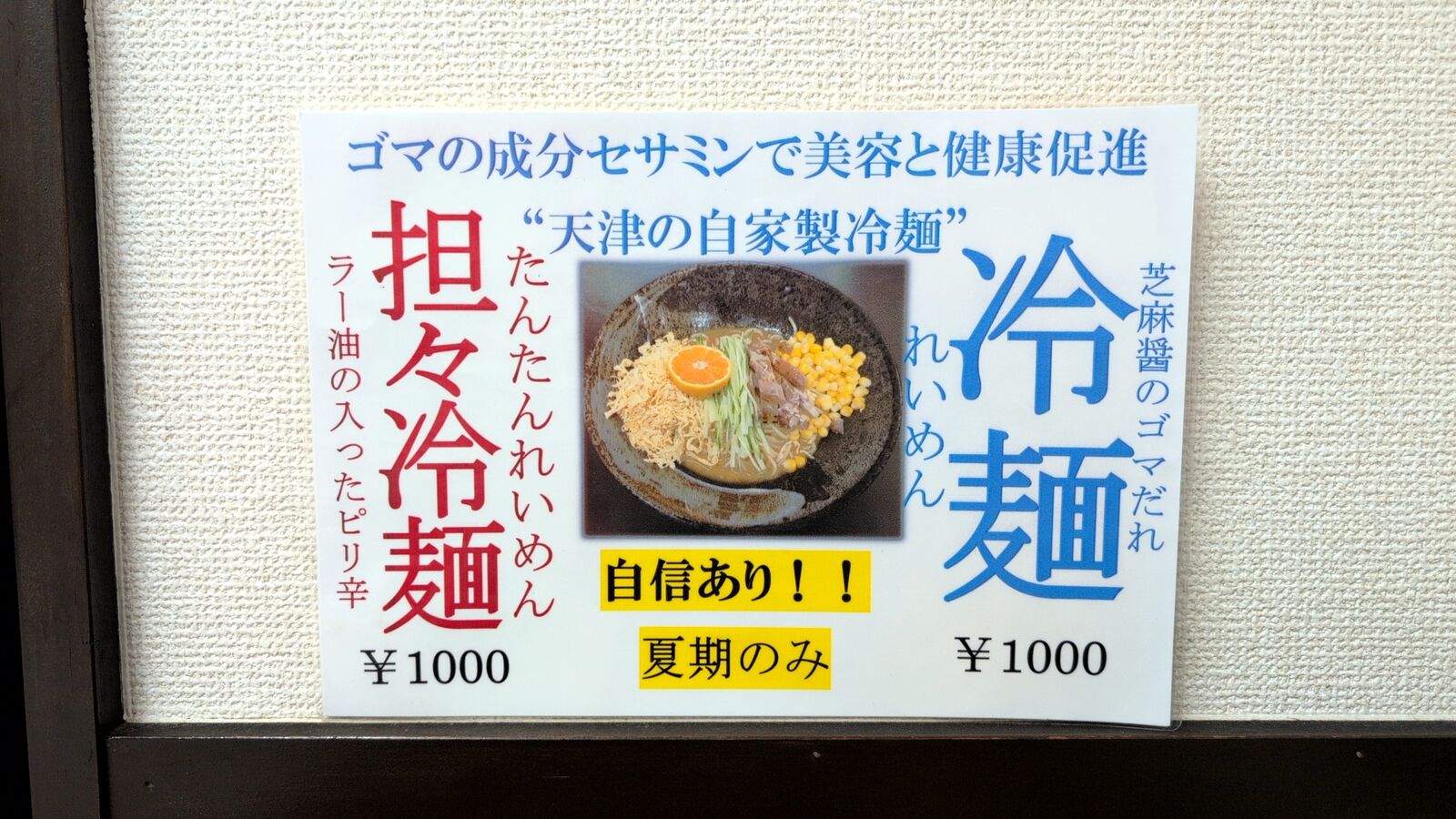 「天津 北摂病院前店」の『自家製ゴマだれ冷麺』(高槻市北柳川町)【たかつーグルメ】