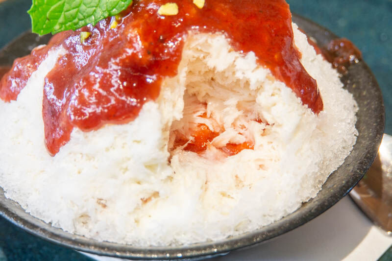 そしてかき氷をひとすくいすると、中にもいちごソースが!!!贅沢!