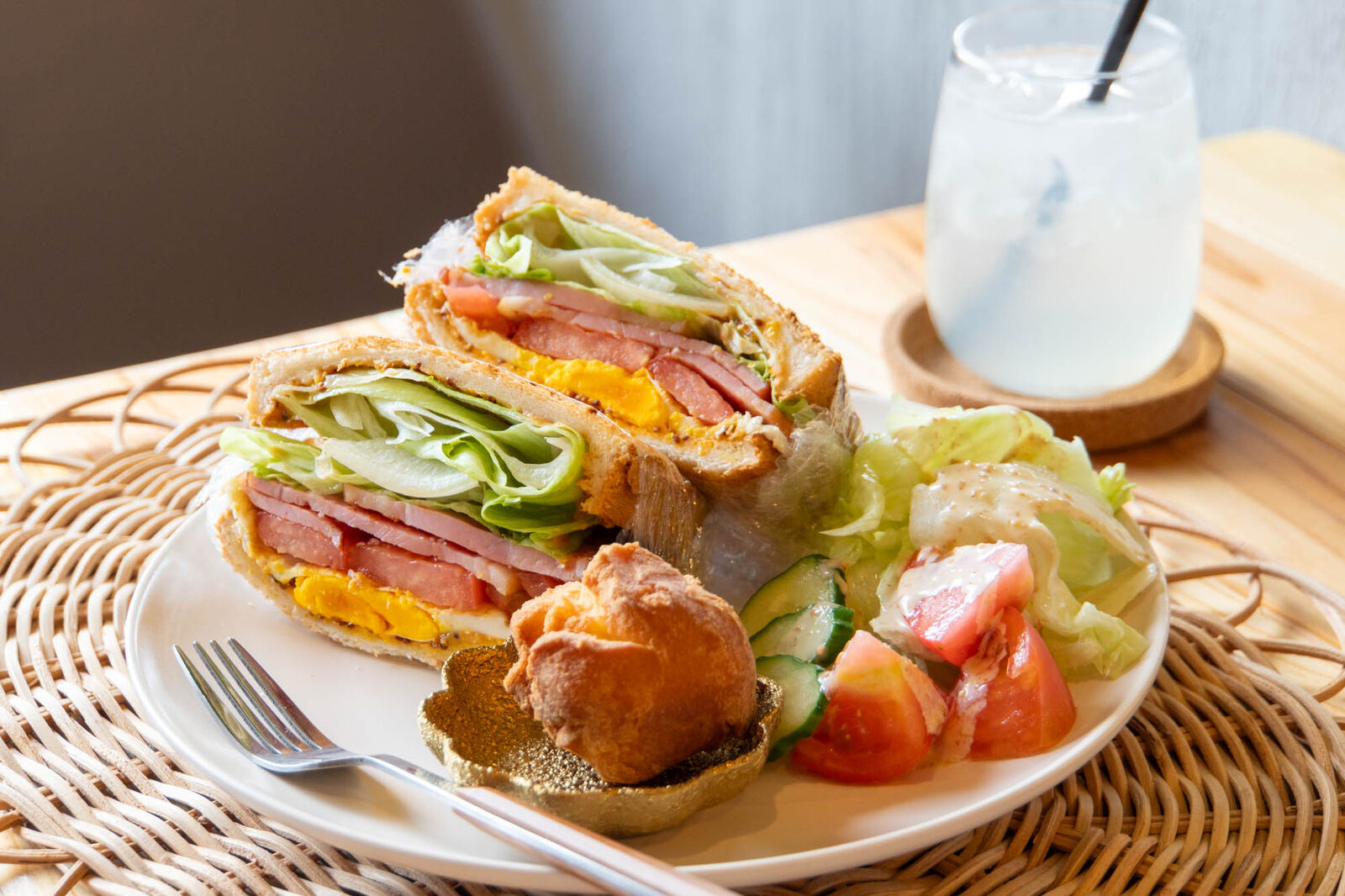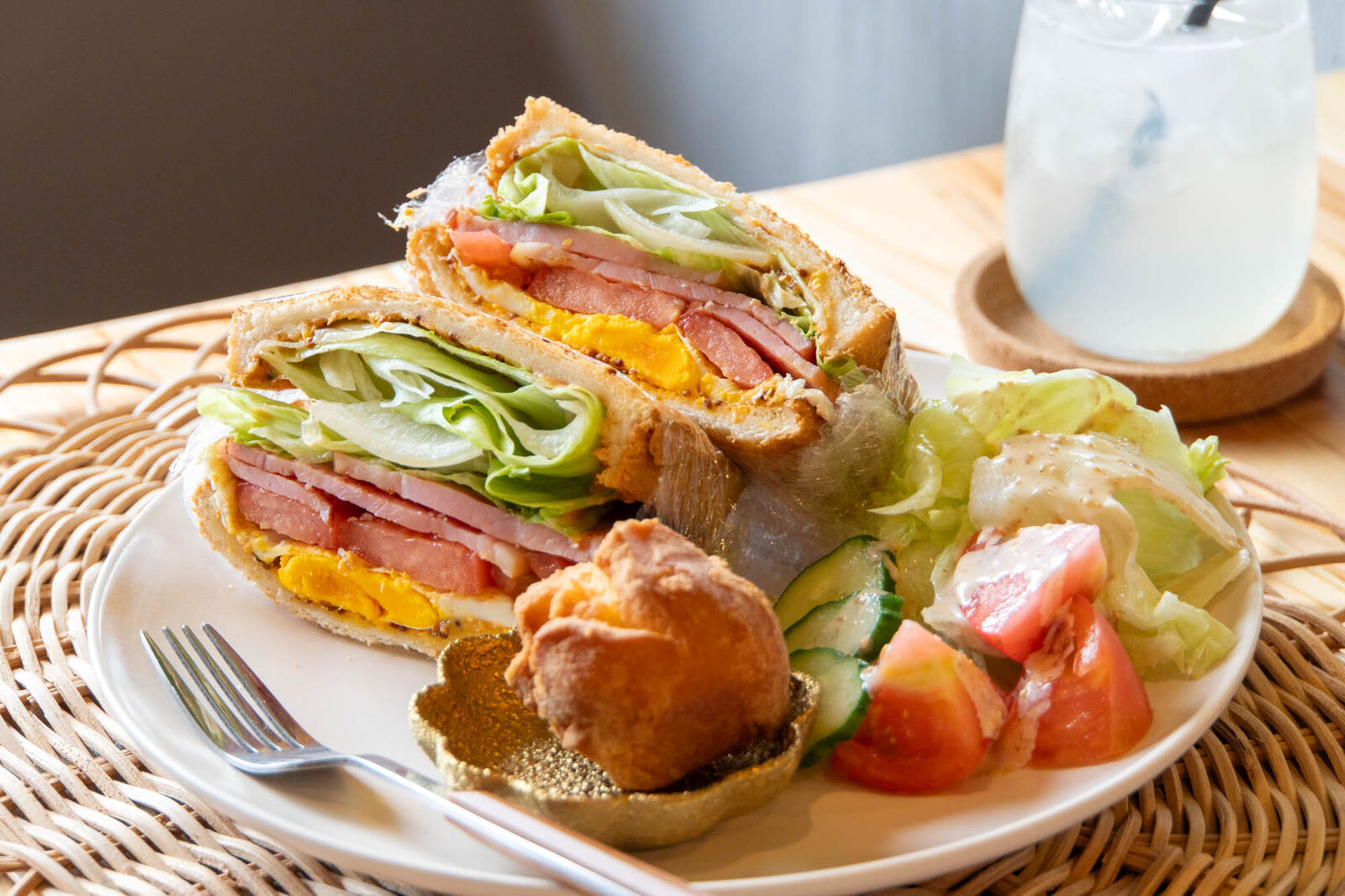 サンドにサーターアンダギーにサラダにドリンクとランチにピッタリのセット!