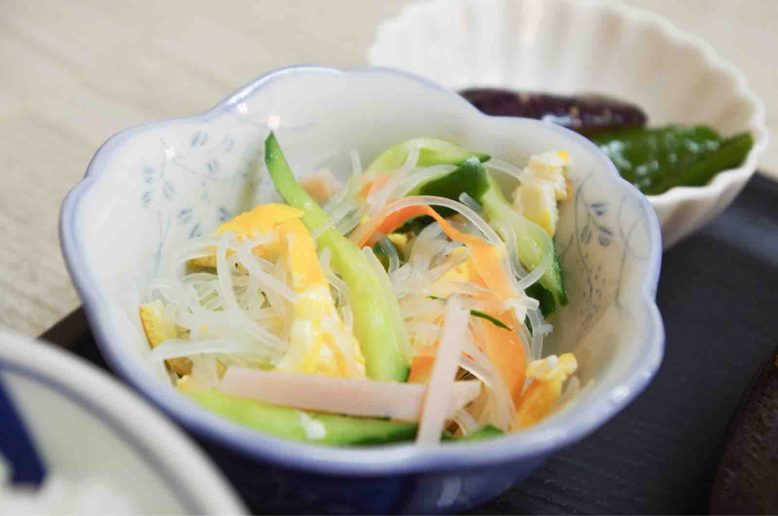 きゅうり、卵、人参、ハム、春雨が入っていてシャキシャキ!