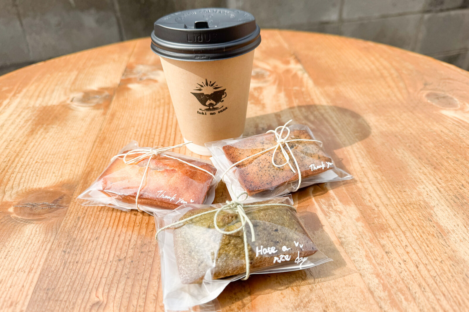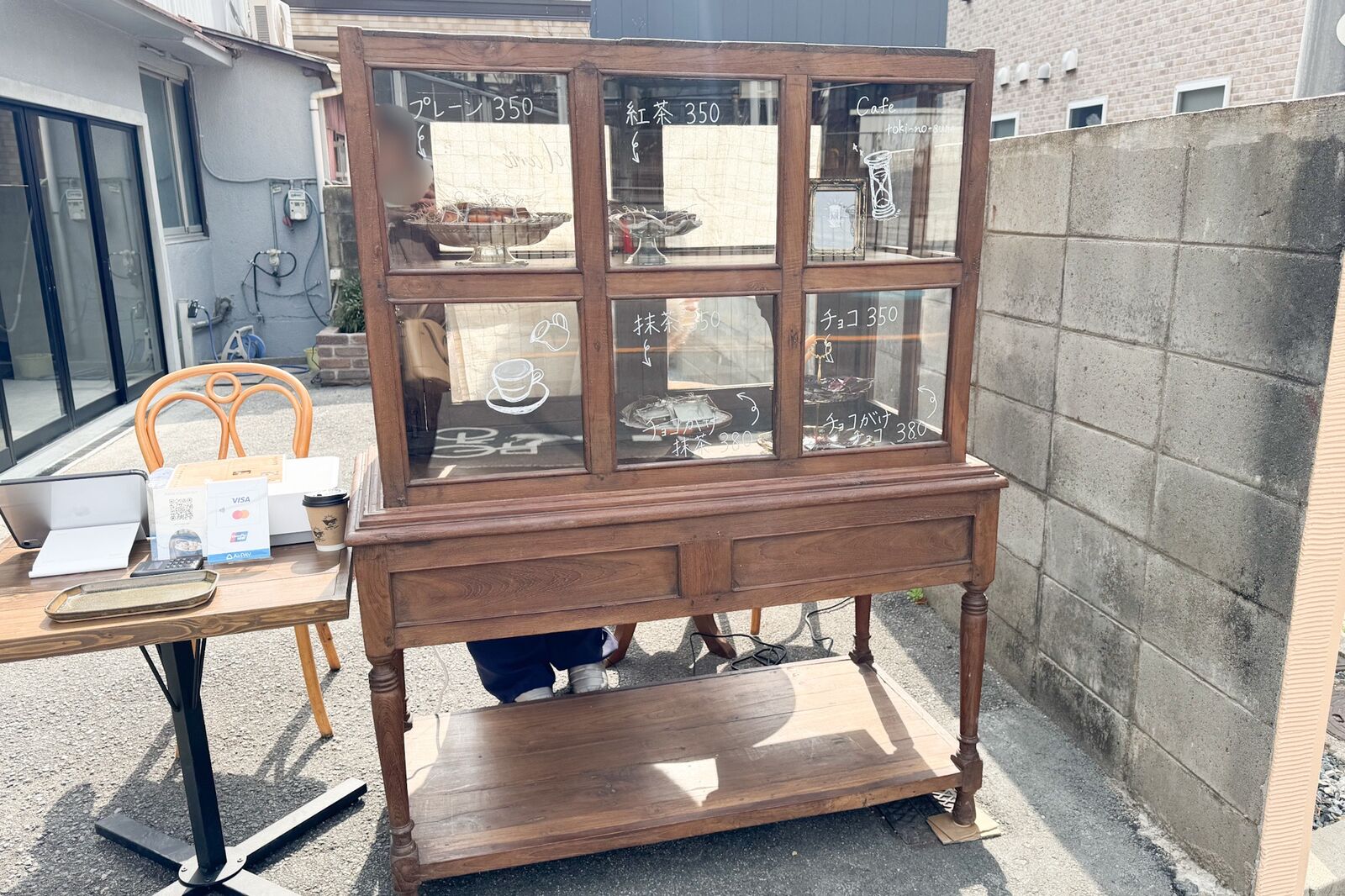 外営業の間はお店の前でドリンクとショーケース内の焼菓子をテイクアウトできます。