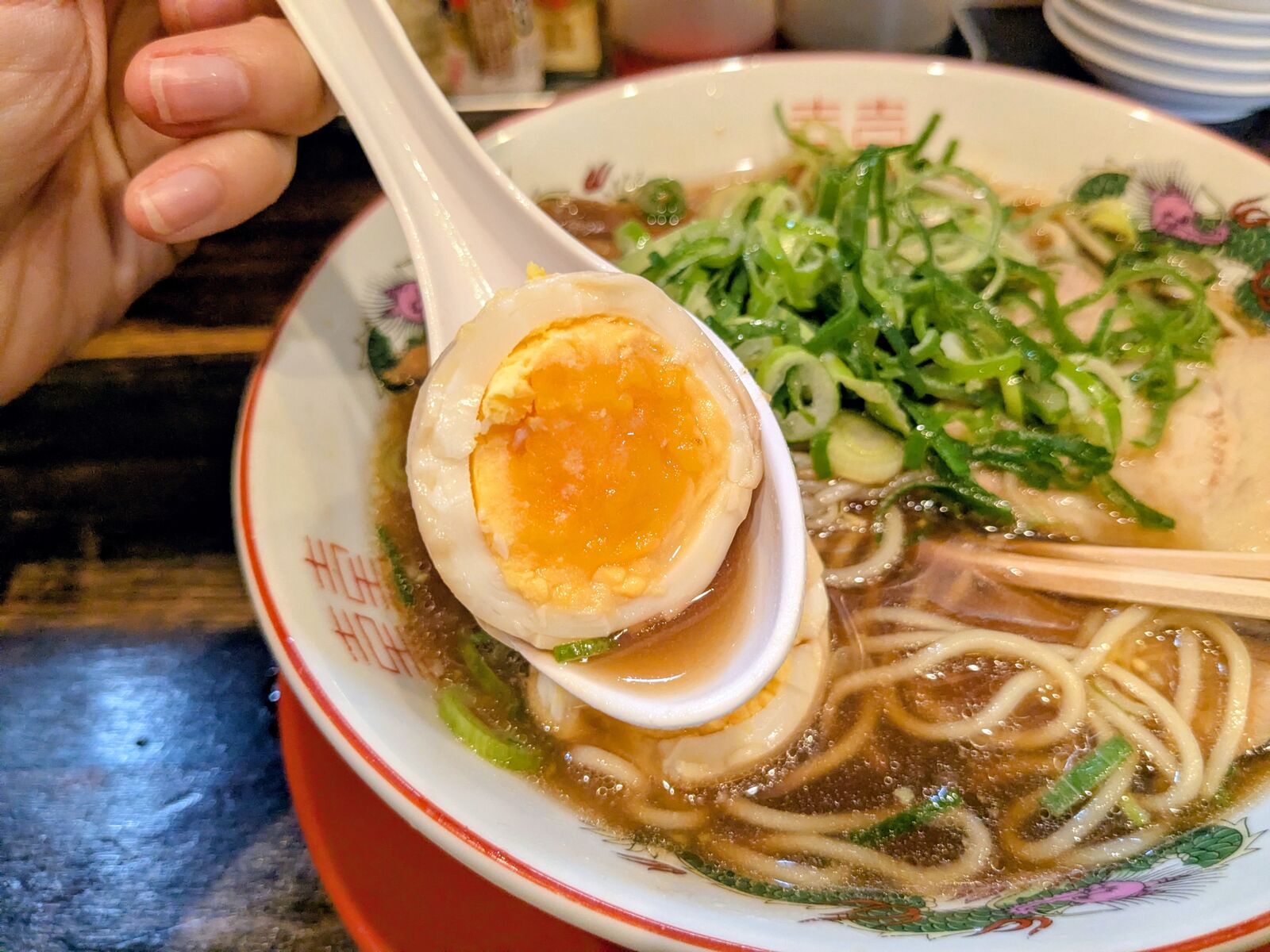 主役の味玉は絶妙な半熟加減の黄身がお目見え。