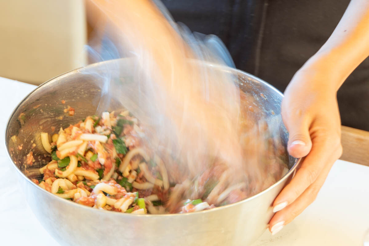 アンドゥが想像でつくった「うどんギョーザ」は通常の餃子のネタにうどんが入っている料理に!
