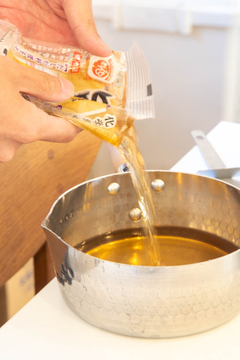 出汁の注ぎ方だけ、やけにプロ感を醸し出して…