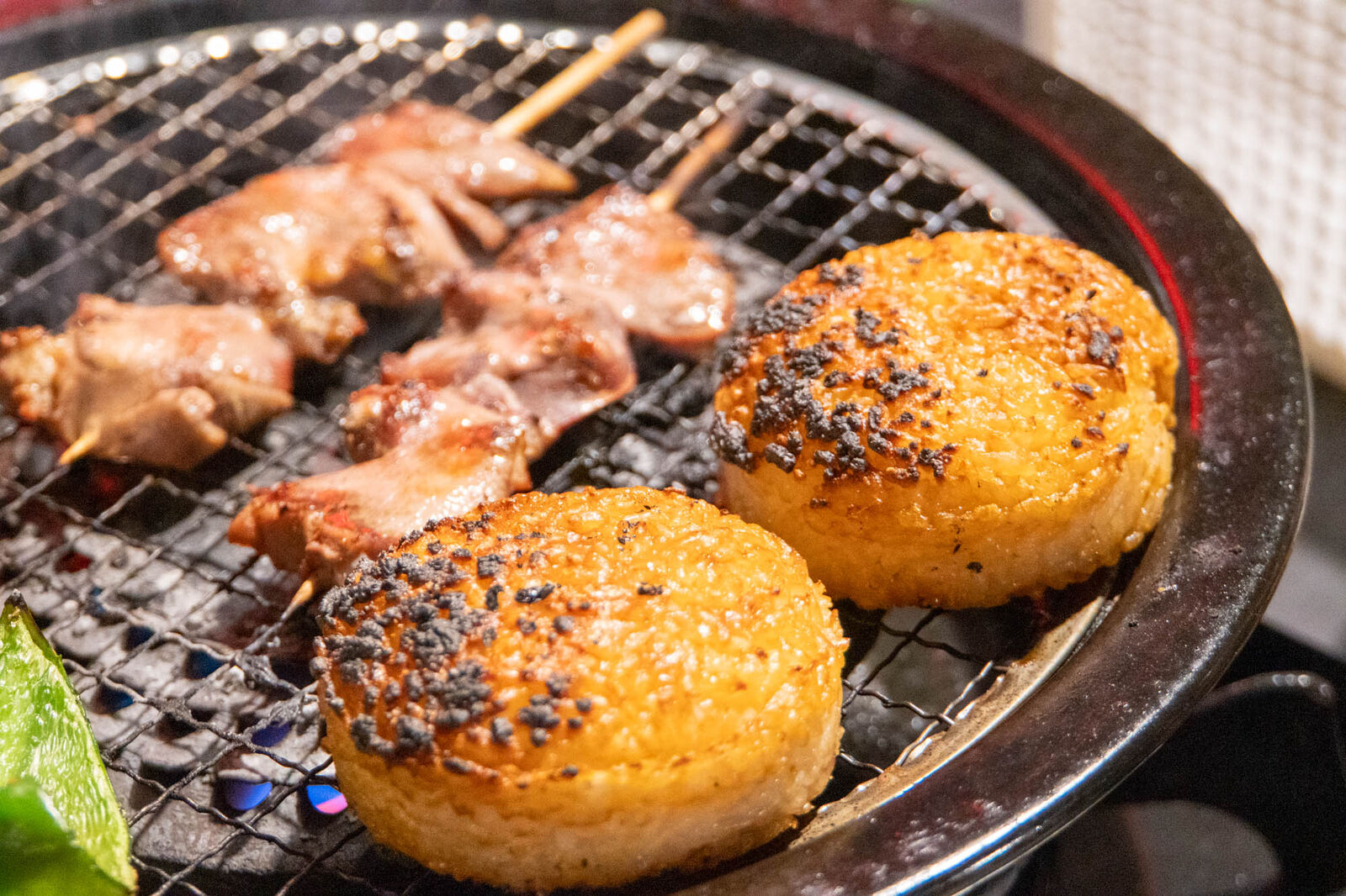 しばらくすると前菜?が到着。エリンギバター醤油、明太じゃがバター、枝豆です。エリンギバター醤油、明太じゃがバターは網の上でしばらく焼くと、バターが溶けてジュワァっと美味しそうな状態に。