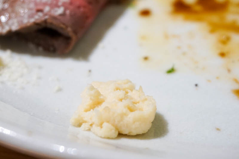 この白いの、にんにくかな〜とおもったらわさびだった!!!風味が良くお肉にすごく合いました!