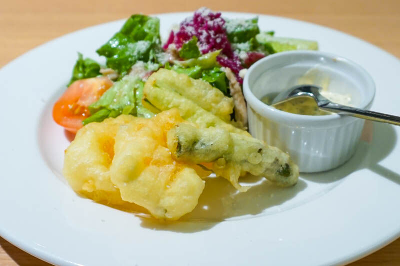 エビのフリットができたてでアツアツ!めっちゃぷりっとしていて、お腹が空いた胃袋にめっちゃしみる〜〜!タルタルも手作りな感じでとてもGOOD〜。