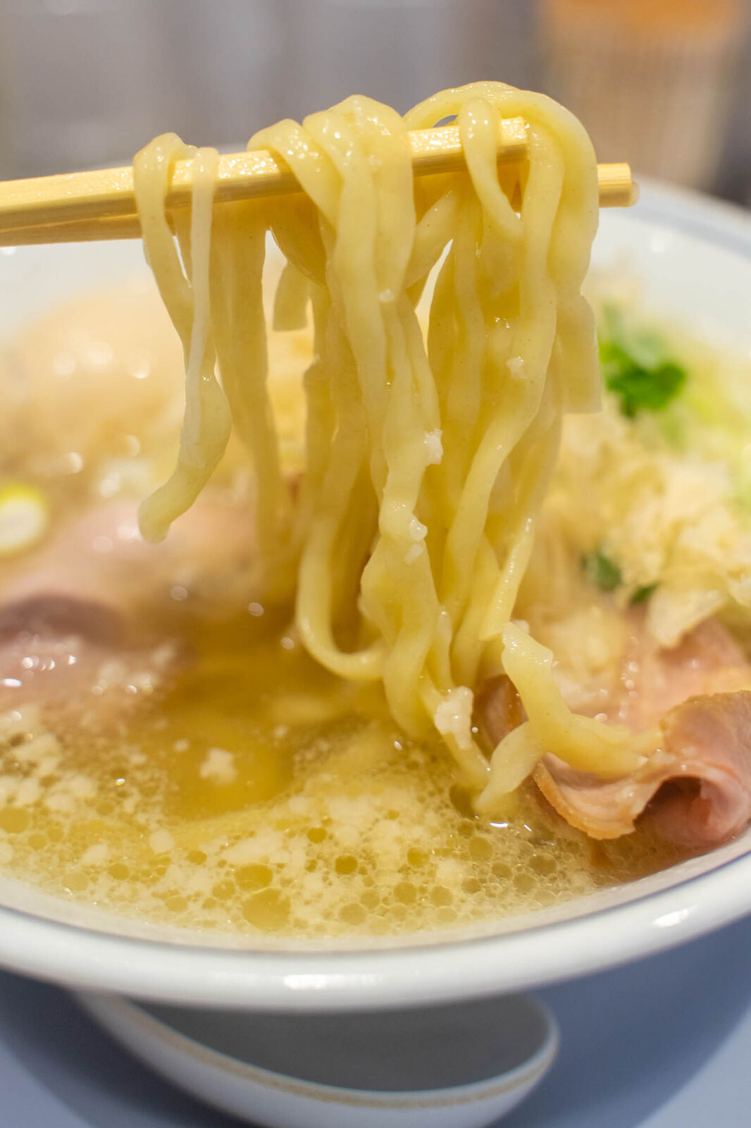 塩ラーメンということでスープ自体はあっさりなんですが、背脂が浮いてたりしてあぶらっぽさはあって、あっさり脂みたいな感じ。