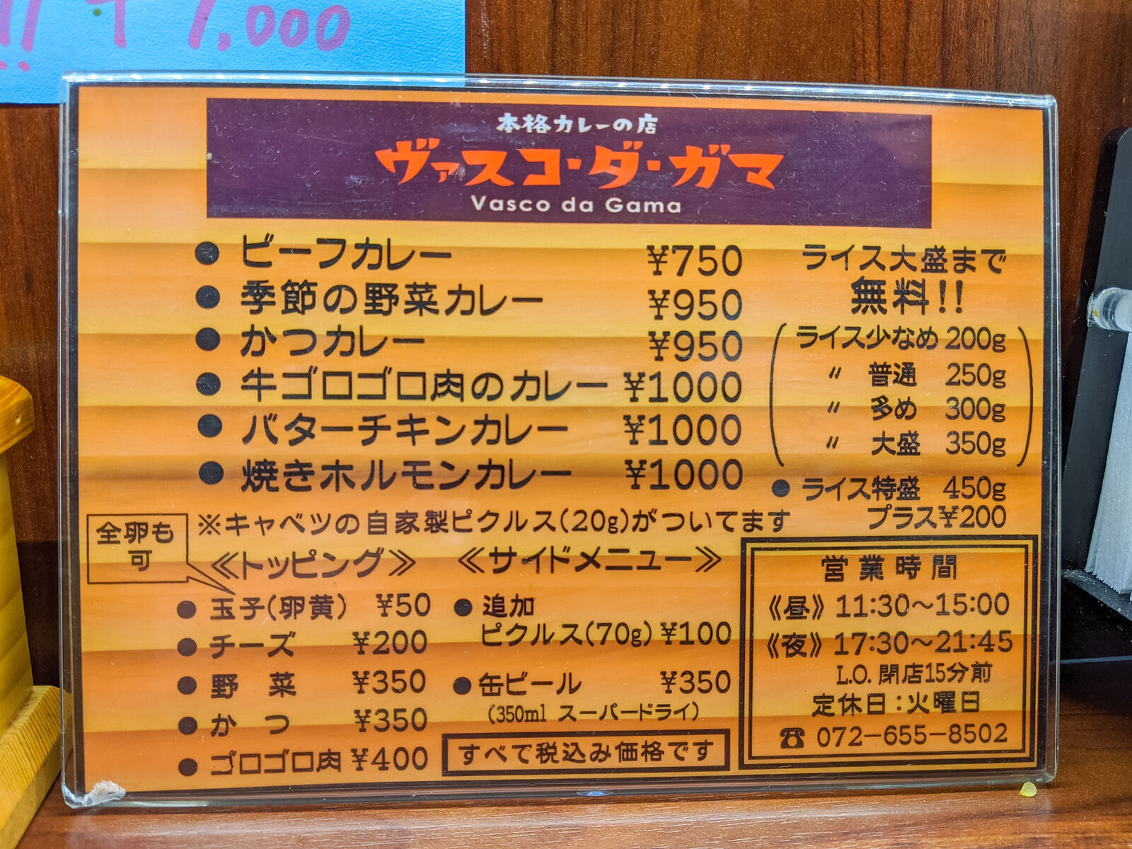 そしたら友達が検索した結果、高槻のカレーといえばヴァスコ・ダ・ガマやろってお話になり、本店はその日休みだったので北園町店へいってきたというのが今回の記事。