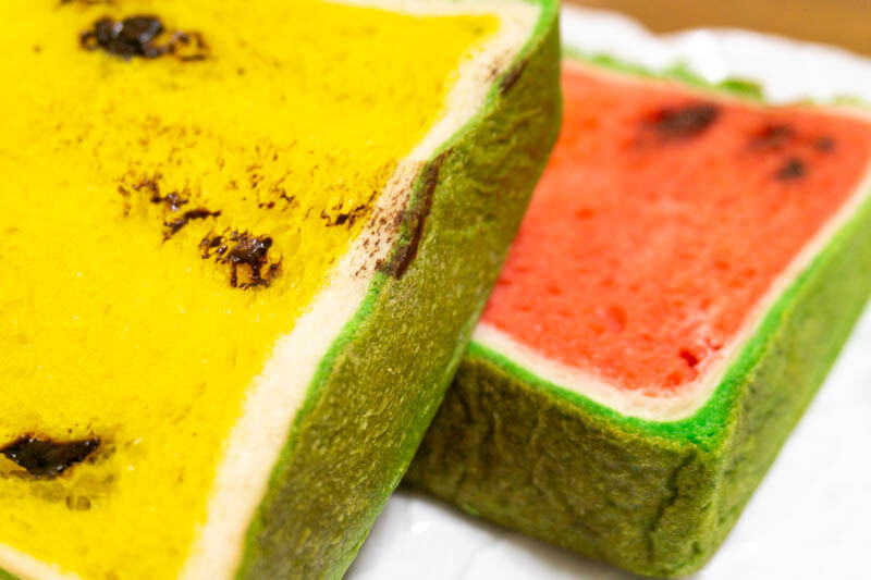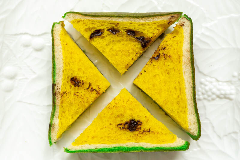この色は添加物食品着色料によるもの。緑部分には抹茶も使われています。
