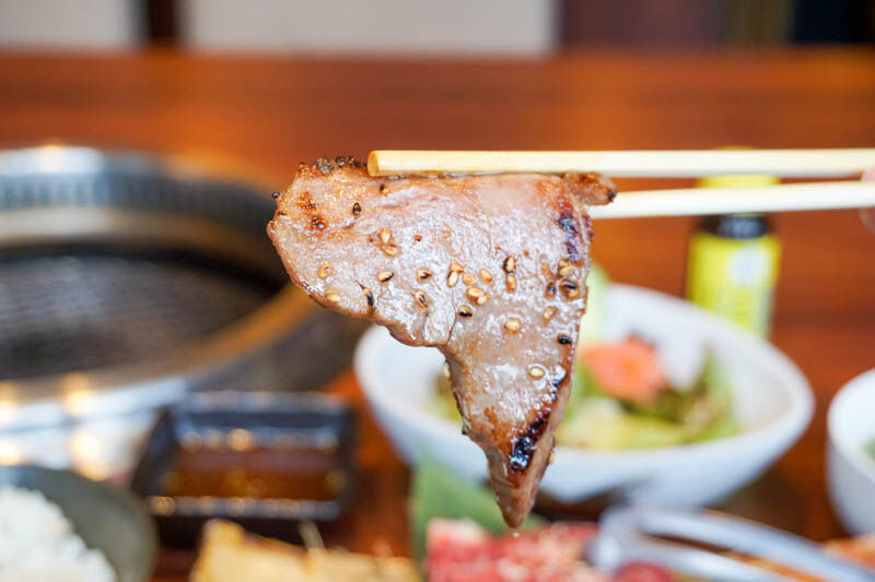 お次はハラミ。お箸で持った感じでもやわらかいのがわかる、ハラミで柔らかいとか嬉しい〜。ジューシーながらも肉の味が…肉に飢えてるとき欲しいやつですね。
