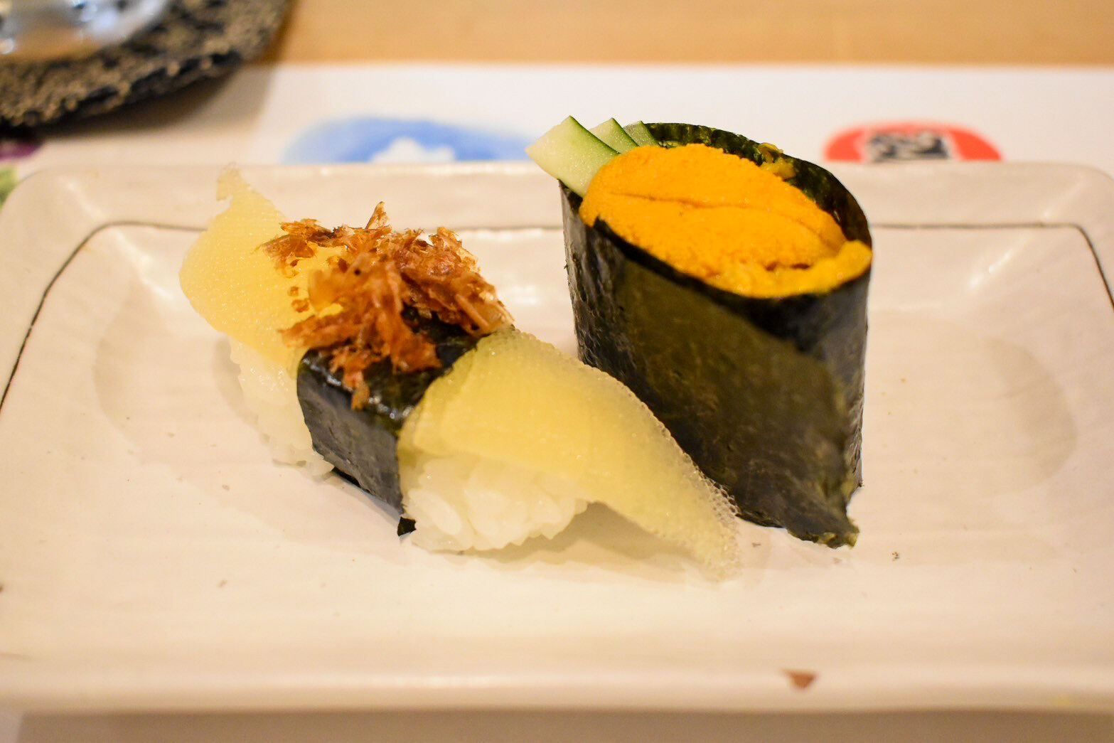 やはり数の子はプチプチの食感がたまらないですよね。お寿司でいただくのは初めてだったので、食感を堪能しました。