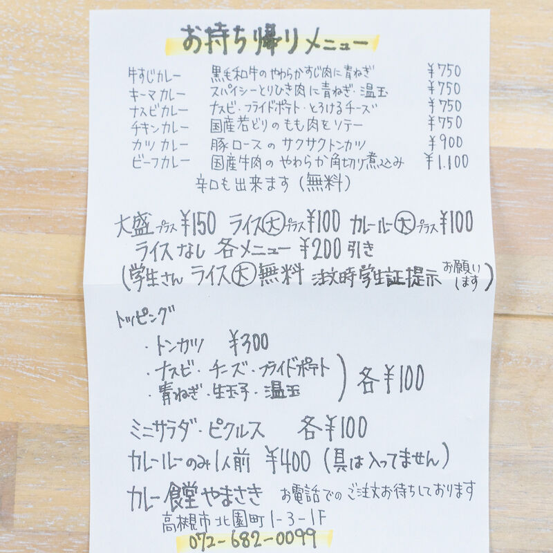 「カレー食堂やまさき」のテイクアウト『牛すじカレー』(高槻市北園町)【たかつーグルメ】