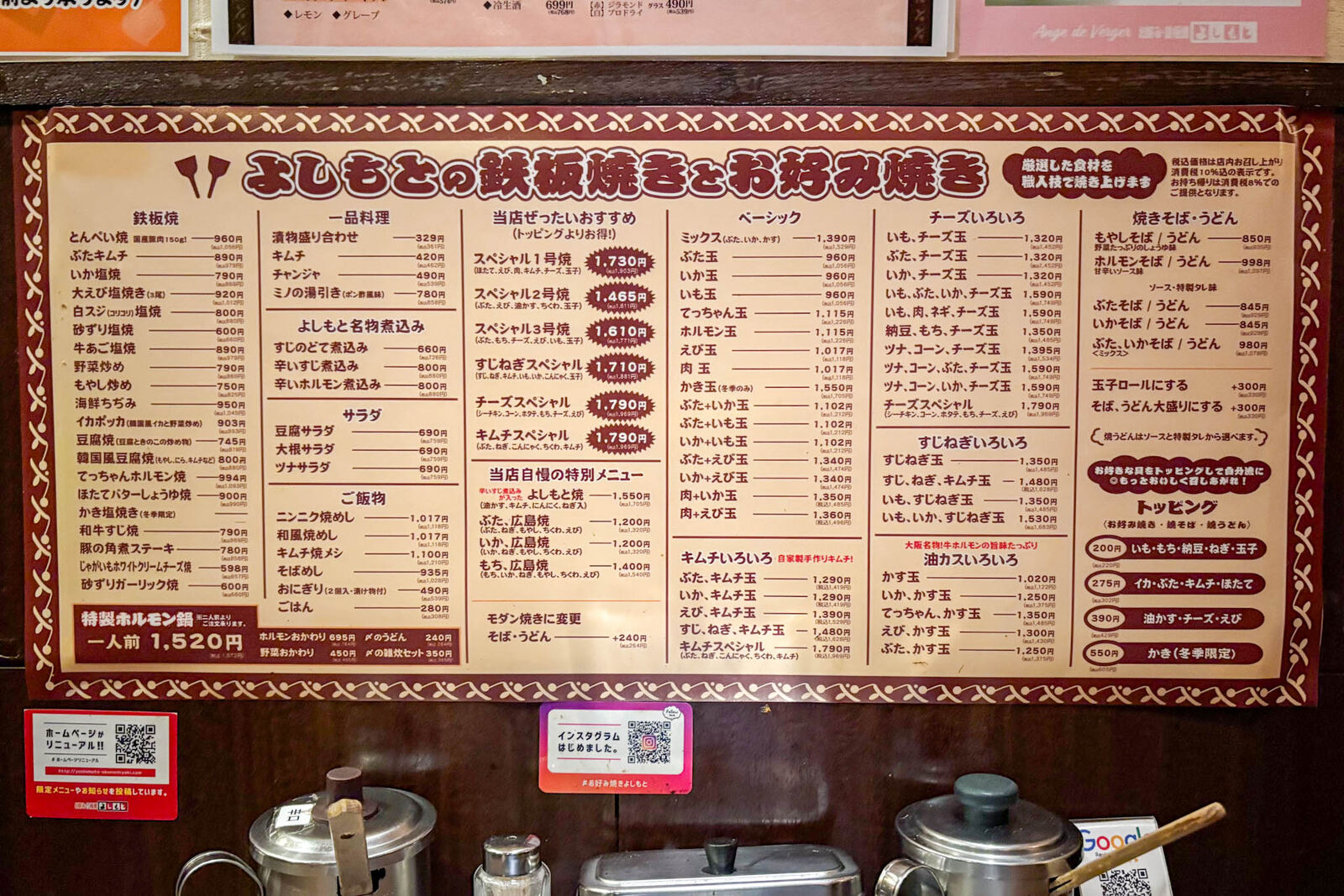 仕事帰り、高槻阪急スクエアの向かいにある「お好み・鉄板焼よしもと」さんへお邪魔しました。