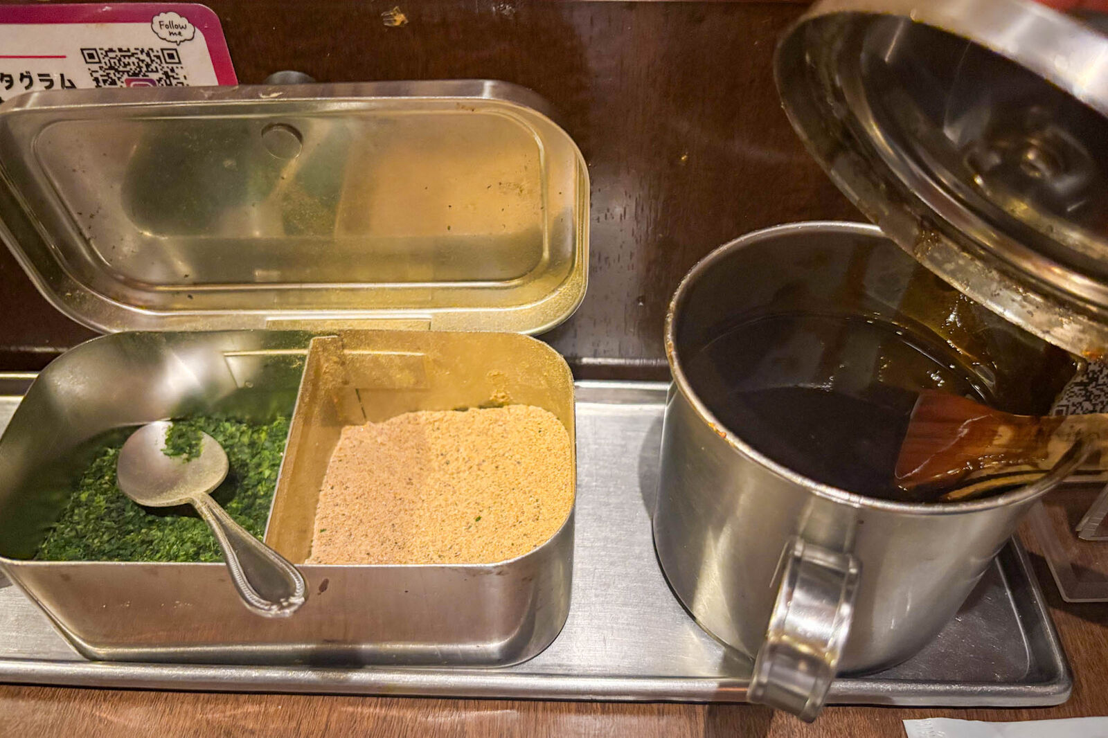 テーブルにはソースと鰹粉、青のりも。