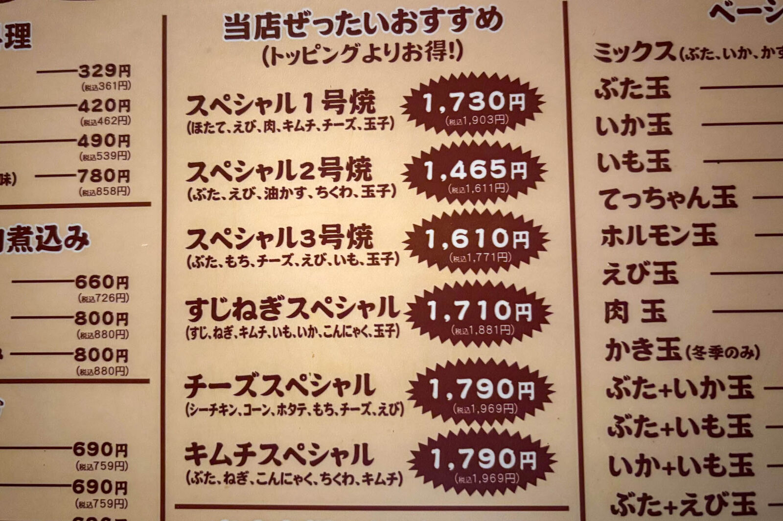 「スペシャル3号焼(1,771円)」などです!