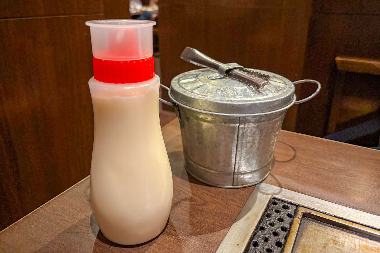 注文を終えると、まず大きなマヨネーズと小さなバケツを持ってきてくださいます。