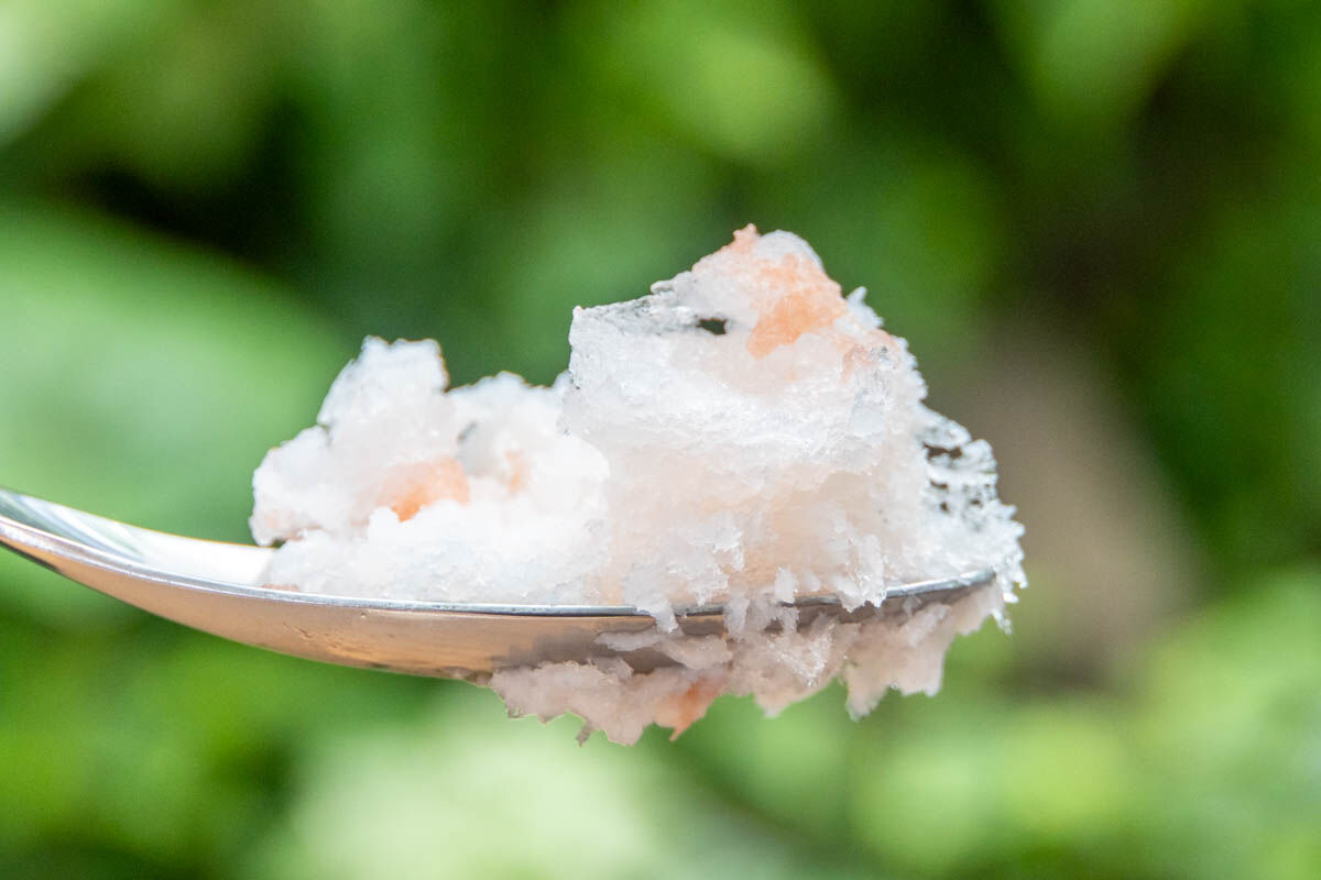 こちらはかき氷を半分ぐらい食べすすめたあとにかける用とのこと。最初にかけちゃうとかき氷が崩壊してしまうそうなので要注意です。
