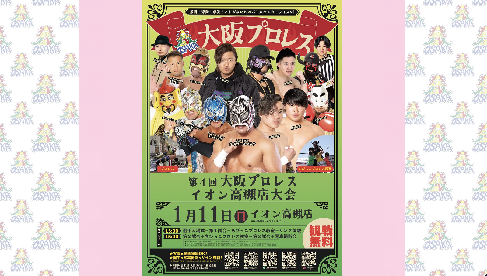 イオン高槻「第4回 大阪プロレス」が開催されるみたい。1月11日