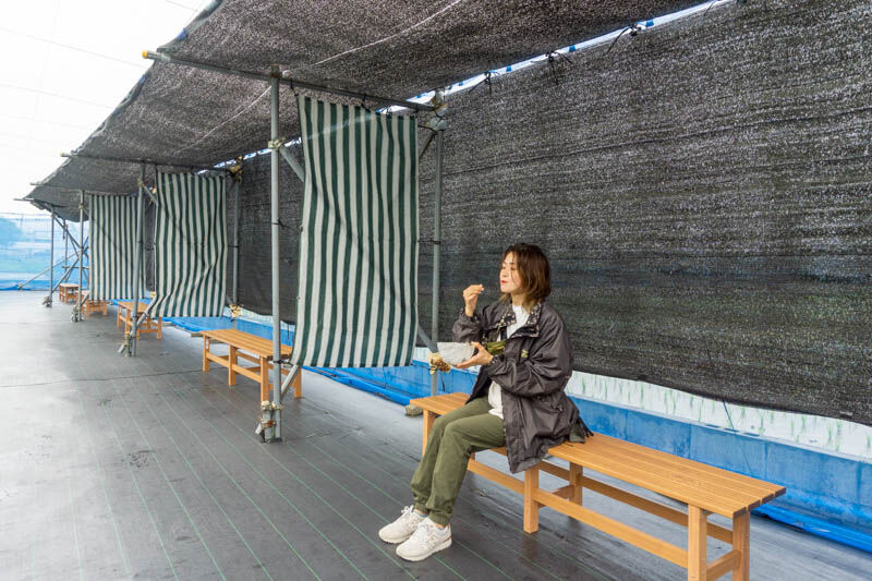 そんな撮影日が結構な雨だったんですが、農園には防水シートがキレイに敷かれていたので、足元は全くぐちゃぐちゃになりませんでした!長靴じゃなくても余裕!