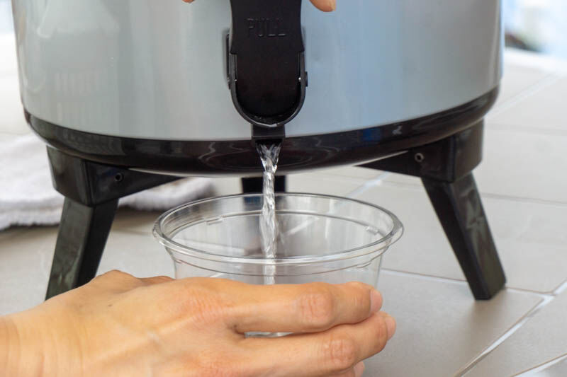 ブルーベリーは無農薬で育てているので、摘んだらそのまま食べることができますが、コロナや他に色々気になる方向けに洗う用の水も用意されていました。