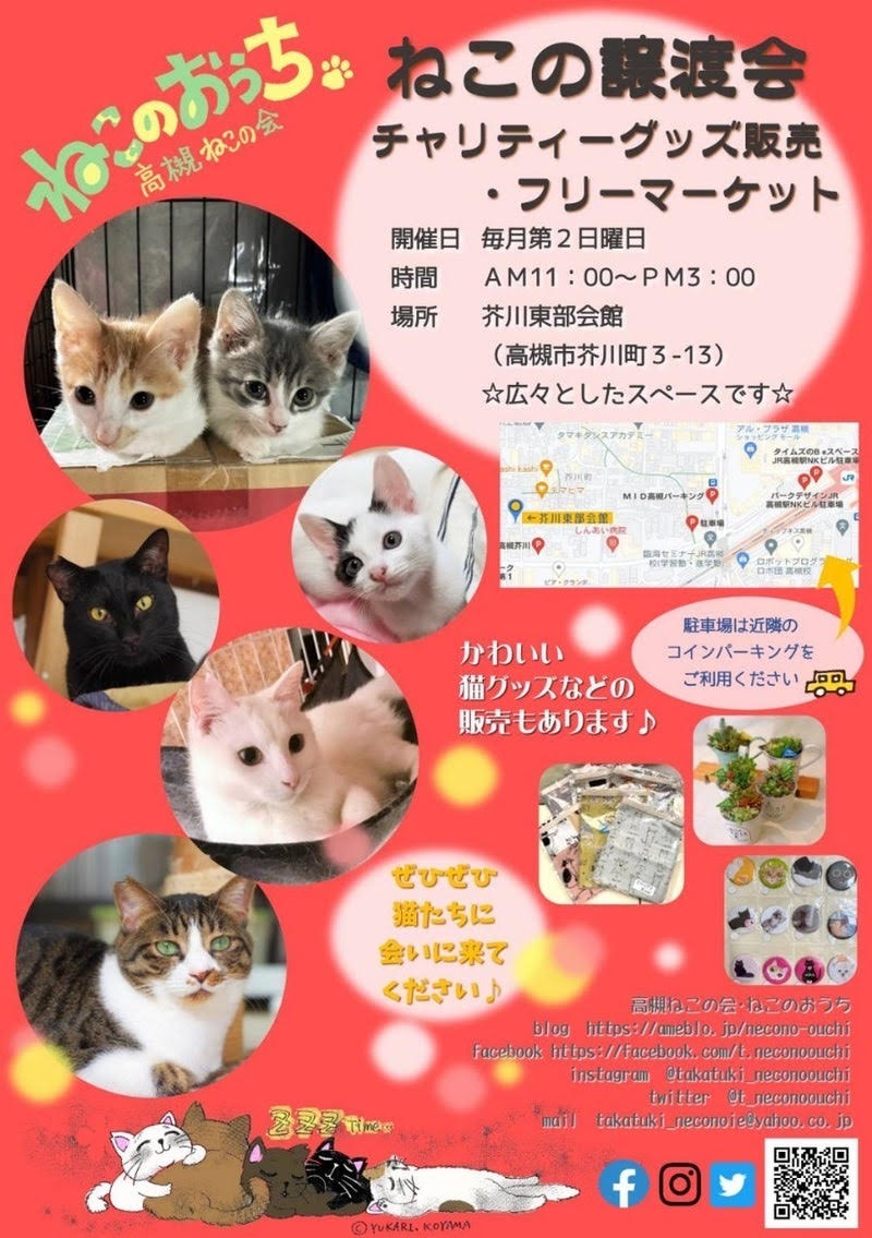 ・ねこの譲渡会&チャリティーグッズ販売&フリーマーケット 芥川東部会館