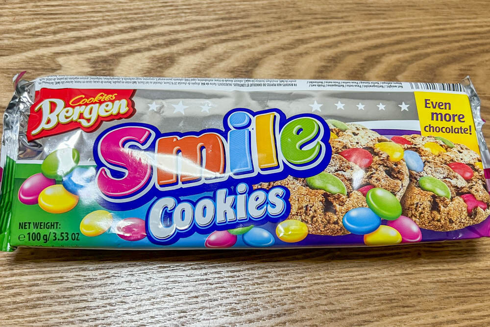 ひとつはYouTuberが紹介してそうな海外のカラフルなお菓子「スマイルクッキー」。