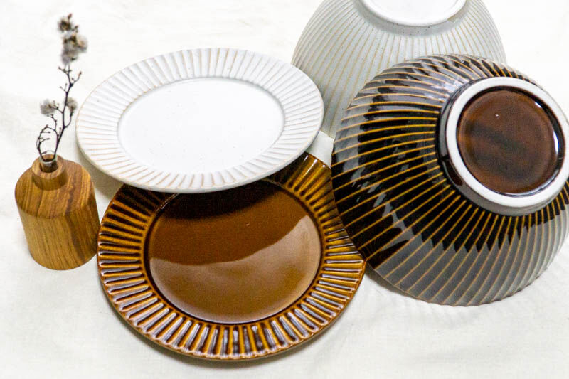 白いほうはマット、茶色いほうはツヤがあって質感が違うところもお気に入り。どちらも使いやすい大きさで、テイクアウトしたケーキとか載せて写真撮るのにぴったり。