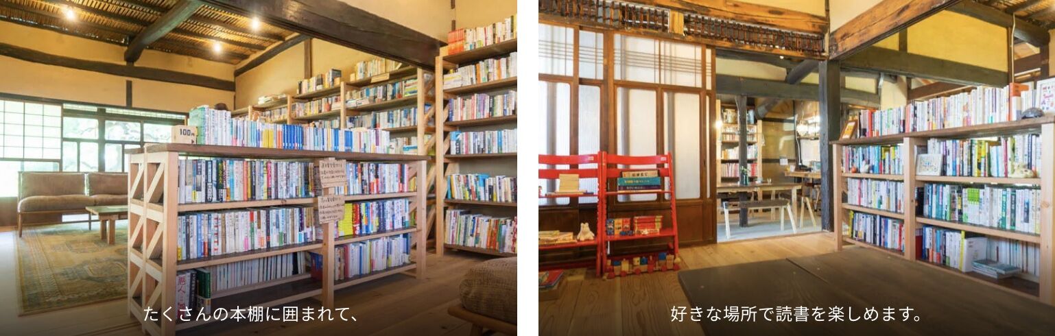 「古民家を数年かけてリノベーションしたおしゃれカフェ。本に囲まれながらドリンクや簡単なスイーツも食べられます!