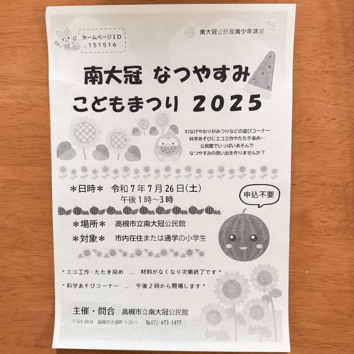 南大冠 なつやすみ こどもまつり2025 ※小学生対象