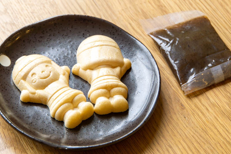 「はにたん最中 ほうじ茶&プレーンセット(500円)」※JR高槻駅ちかくの自販機で購入