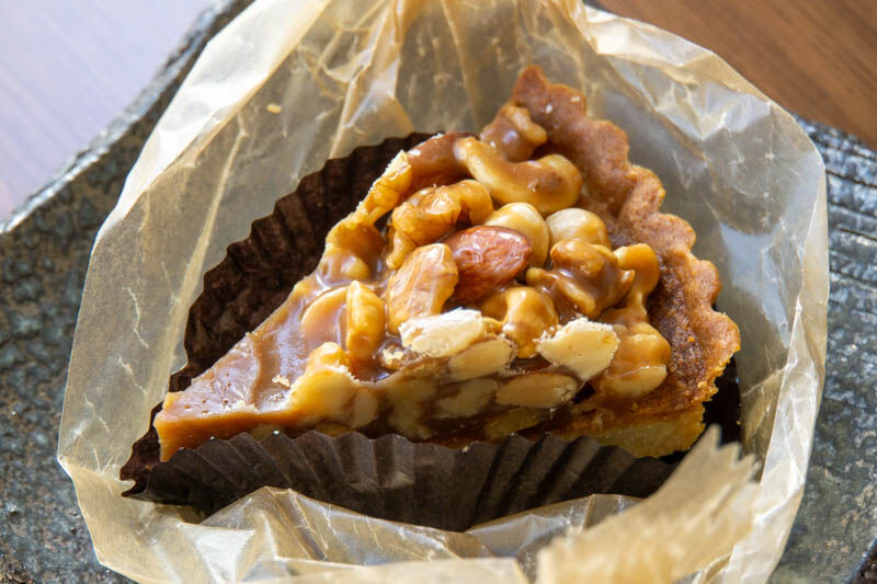 た〜っぷりのキャラメルに溢れんばかりのナッツ類!あまいタルトとキャラメルに、香ばしいナッツの組み合わせがすごい中毒性のある味!