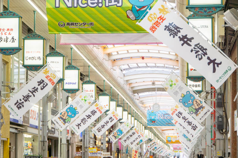 高槻センター街では両対局者の名前が書かれた特別なのぼりが設置されていますよ〜!