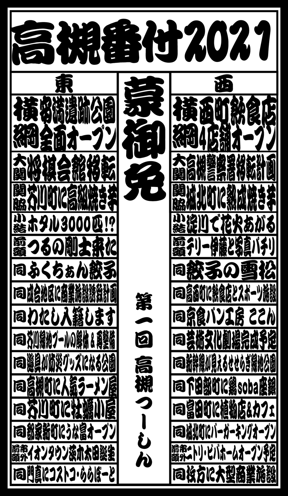 たかつー編集部が独断で決定!北の横綱・南の横綱 高槻番付2021、発表します!