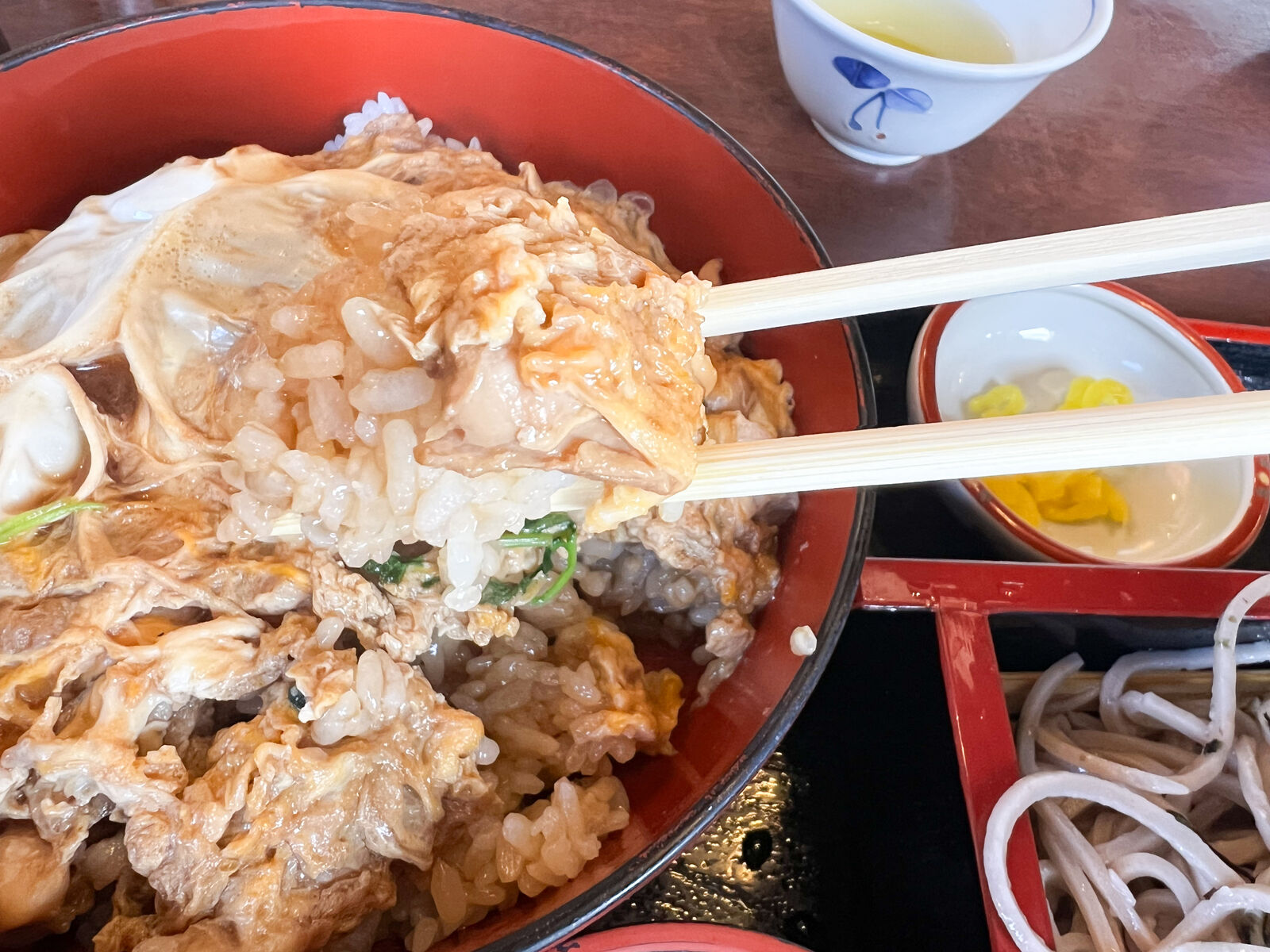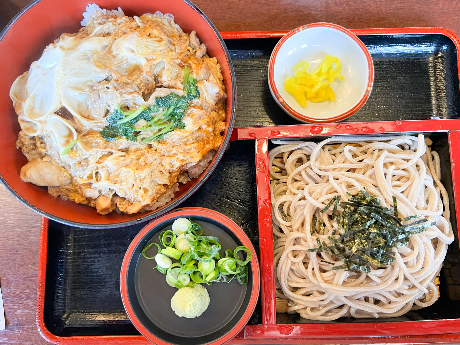 電車から降り、少し歩いてお腹がぺこぺこになった私の目に飛び込んできたのは、親子丼と麺を味わえる贅沢な『親子丼と麺の定食』。