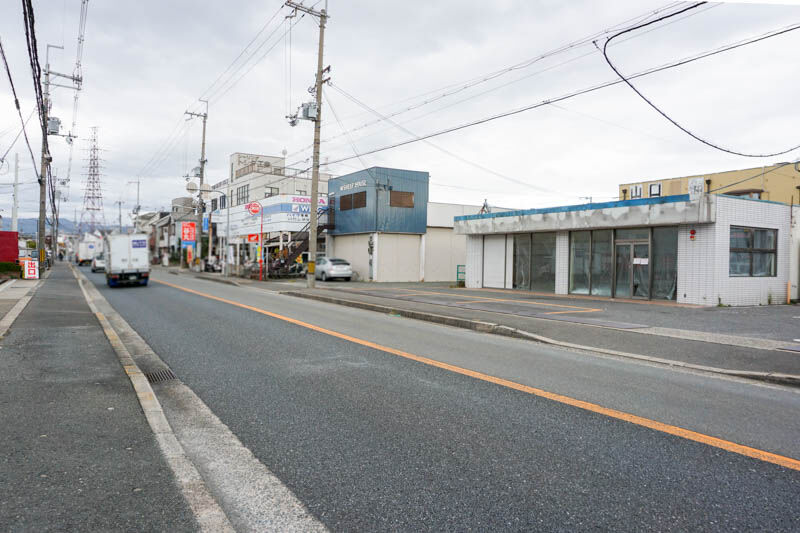 目の前の道路は府道16号線でして、こっちに行くと10月にオープンした2輪ショップ「鈴創」、芥川を越えると下田部にある「ローソン 下田部2丁目店」が、そのまま北に進んでいくと市役所方面です。
