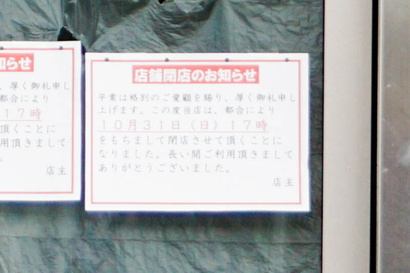 10月31日17:00に閉店したとのこと。