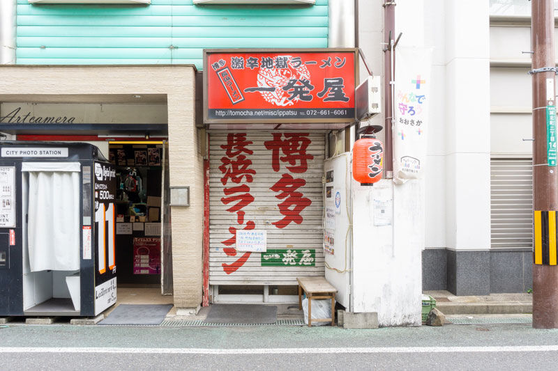 一発屋は激辛地獄ラーメンなどを提供する、阪急高槻市駅南側の城北通り沿いにあるお店。