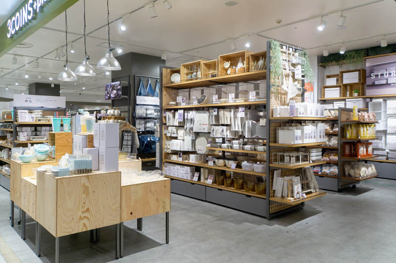 高槻阪急にできた「3COINS+plus」はこんな感じ。超大型店ならではの商品も