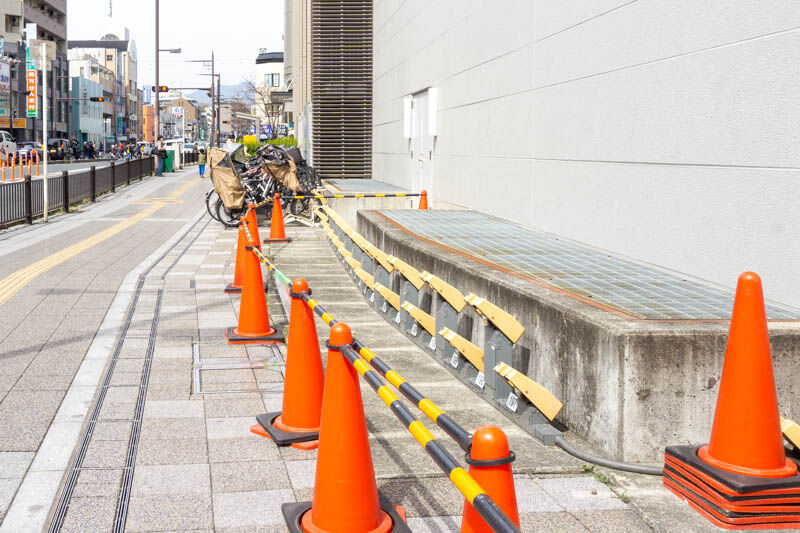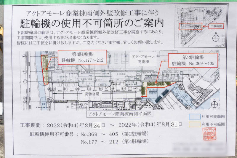 また、アクトアモーレ南側の外壁工事のため一部駐輪機が使用できなくなっていました↓